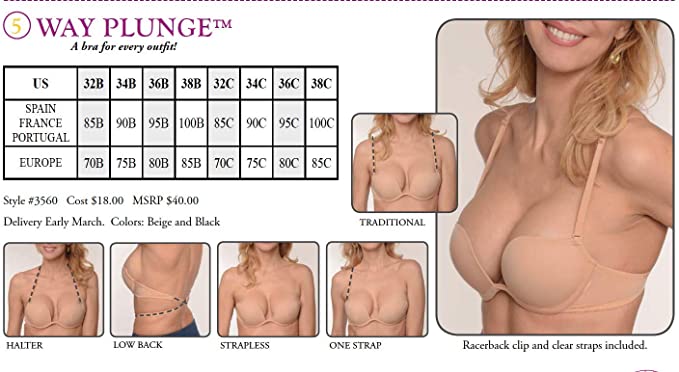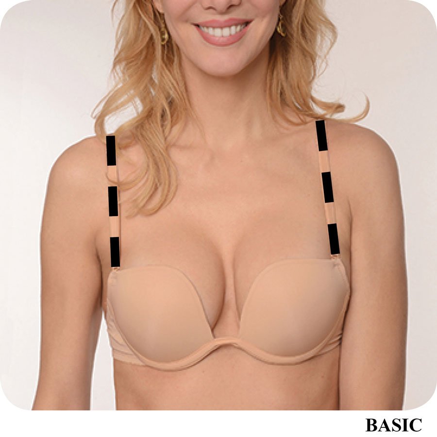Inspired by backless, strapless, and deep plunge fashion, BRAZA designed the 5 WAY PLUNGE bra to offer you a wide range of dressing options.