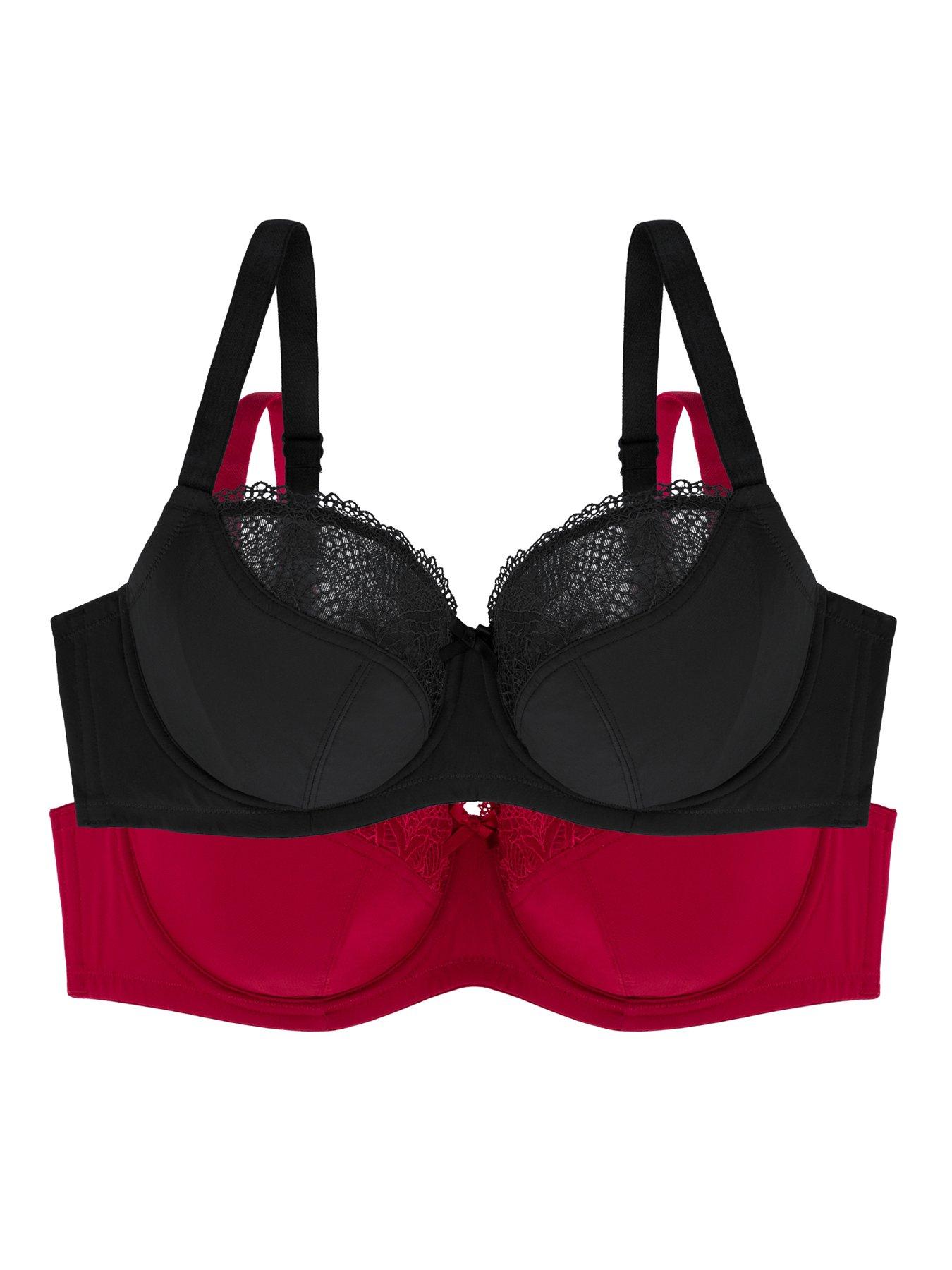 DORINA Curves Faith Pack of 2 Unlined Wire Bras, Black/Red