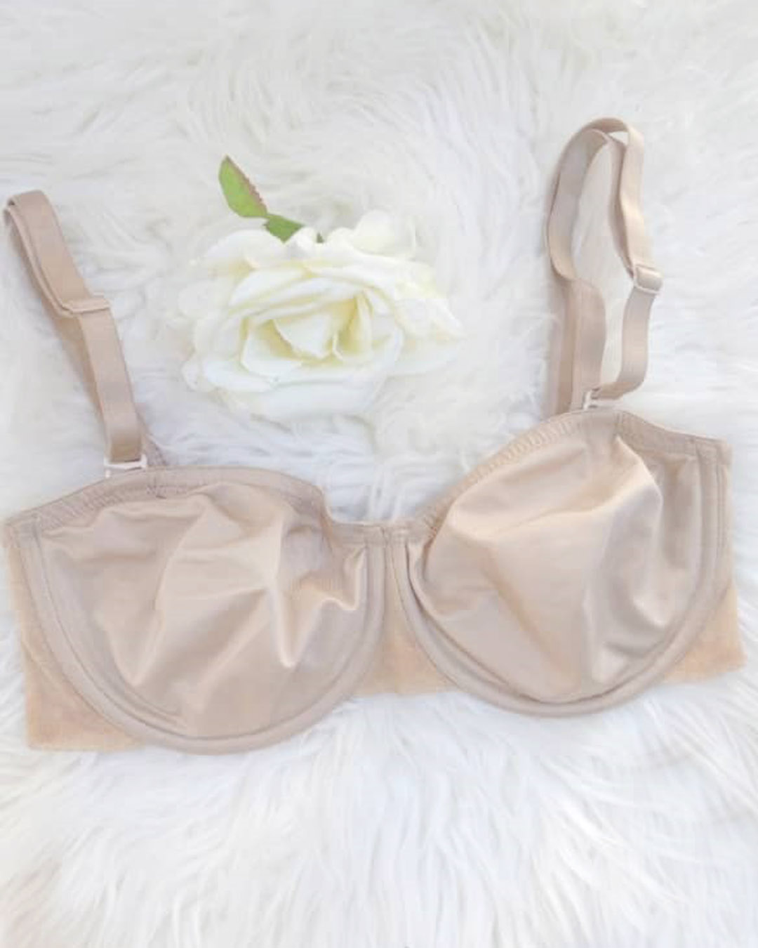 featuring underwire, hook and eye closure and adjustable shoulder straps
