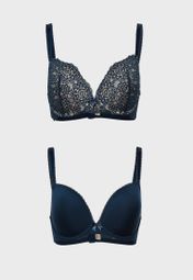 DORINA Abigail Pack of 2 Padded Plunge Bras, Nude/Ink