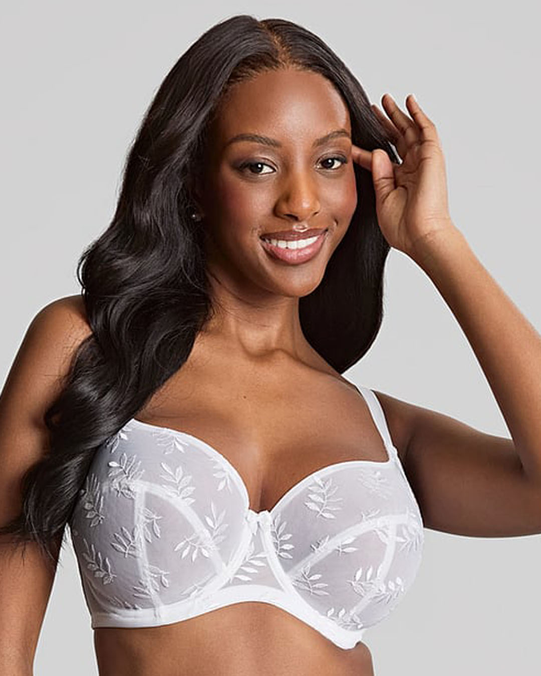 A firm Panache favourite, the Tango Balcony bra in white never disappoints when it comes to fit and support. With laminated cups to provide an uplifted and supportive fit and a rigid fabric to provide ultimate security. The Tango Balcony is finished off with Austrian designed leaf embroidery and a satin bow at the centre front for a simple look.