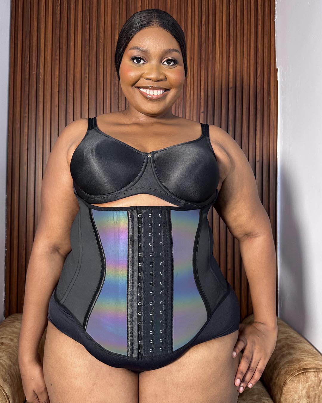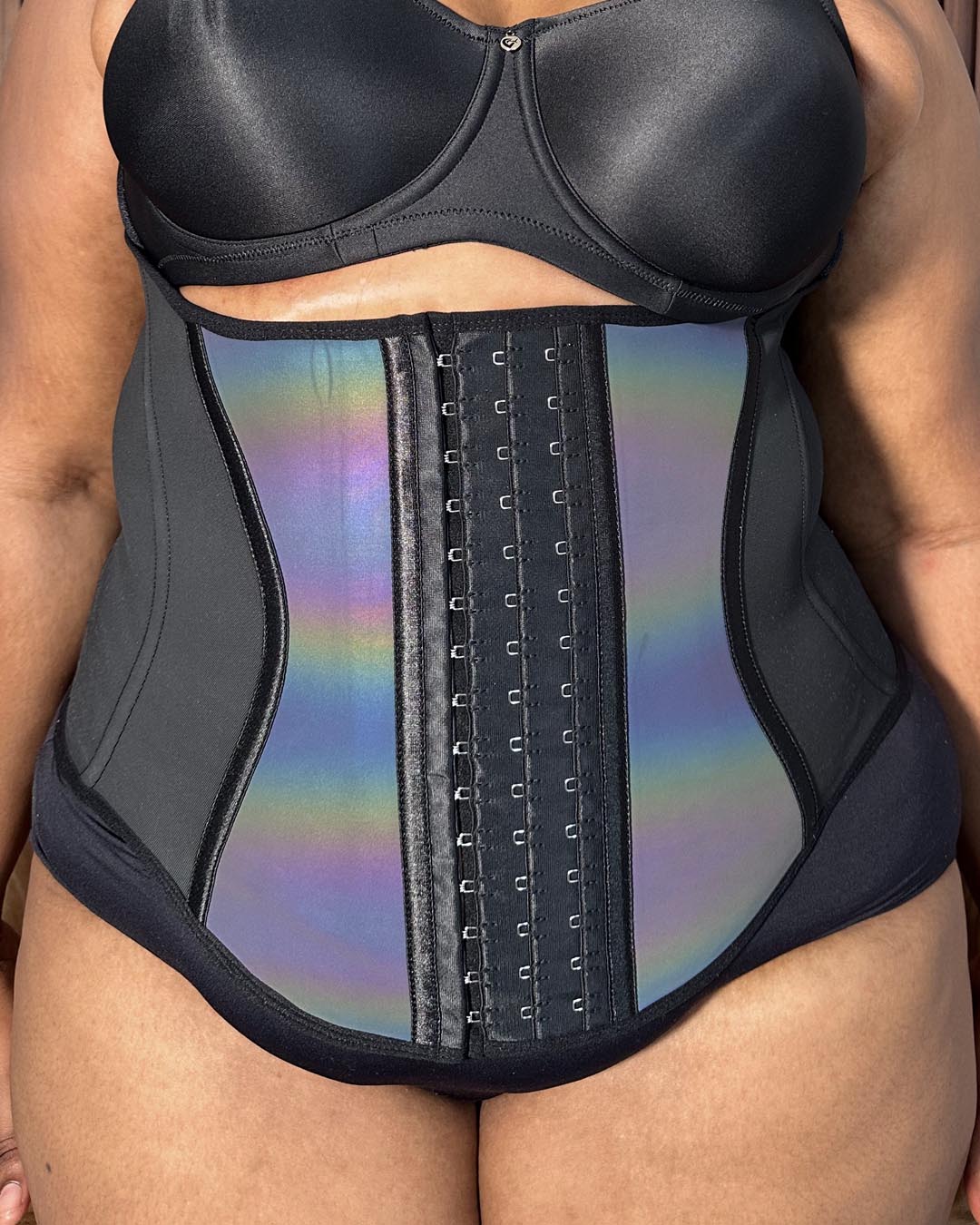This waist cincher features 11 steel bones for firm support and posture improvement, with a high back and extended lower-abdomen design for comprehensive tummy control. The glossy front panel creates visual contrast to highlight your waistline and accentuate an S-shaped silhouette. Made with durable, high-compression latex for powerful shaping and long-lasting performance, it includes adjustable triple front hooks to customize your fit and compression level.