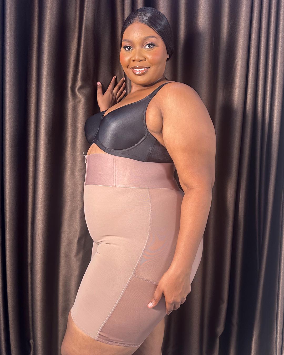 PowerSculpt Slim Firm Shaping Tummy Thigh Slimmer with Zipper, Brown